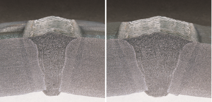 • SpeedArc 可显著提高焊缝强度。SpeedArc 的熔深明显大于普通 MIG-MAG 焊工艺的熔深。